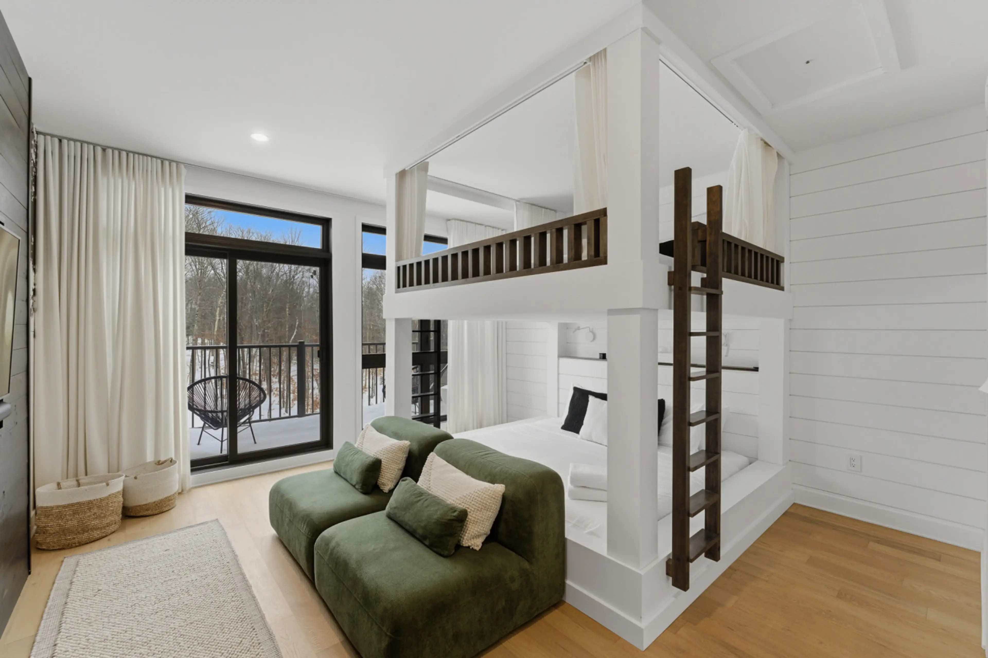 Stunning 4-bedroom, 3-bathroom condo at Verbier, just 5 minutes from Mont-Tremblant village. Featuring a modern, fully equipped kitchen, a living room with large sun-filled windows, a cozy fireplace, and unique, artful décor. Enjoy a spacious private terrace with BBQ and peaceful forest views, plus ...