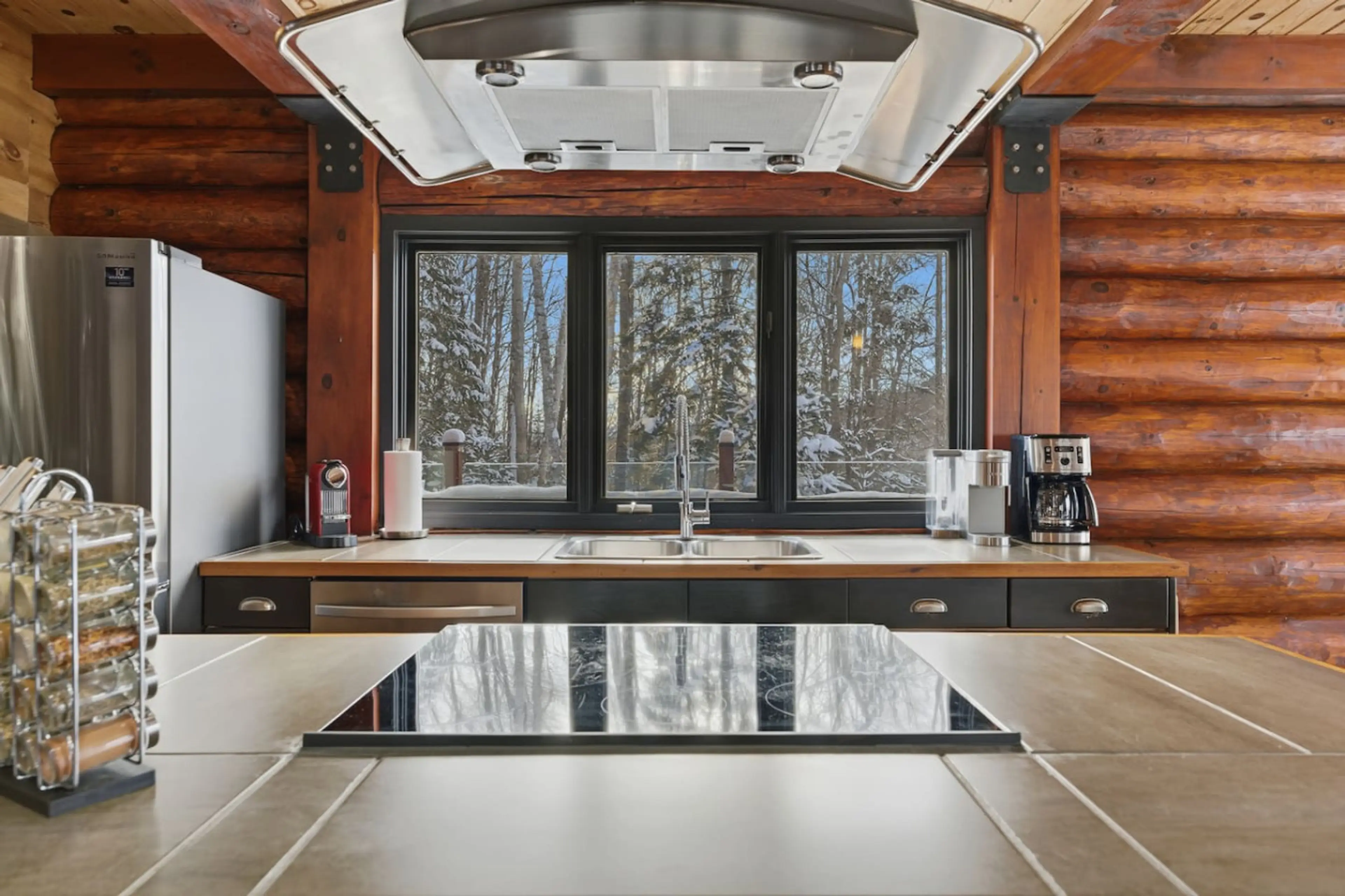 Fantastic house melding modern amenities - the fireplace, hot tub, tv nook, kitchen, etc - with rustic log cabin architecture, located very close to the lake and two terrific restaurants, and only a 10 minute drive to the North side of the ski hill. Perfect if you're looking for a quieter, more secluded Tremblant experience. LOVED it!