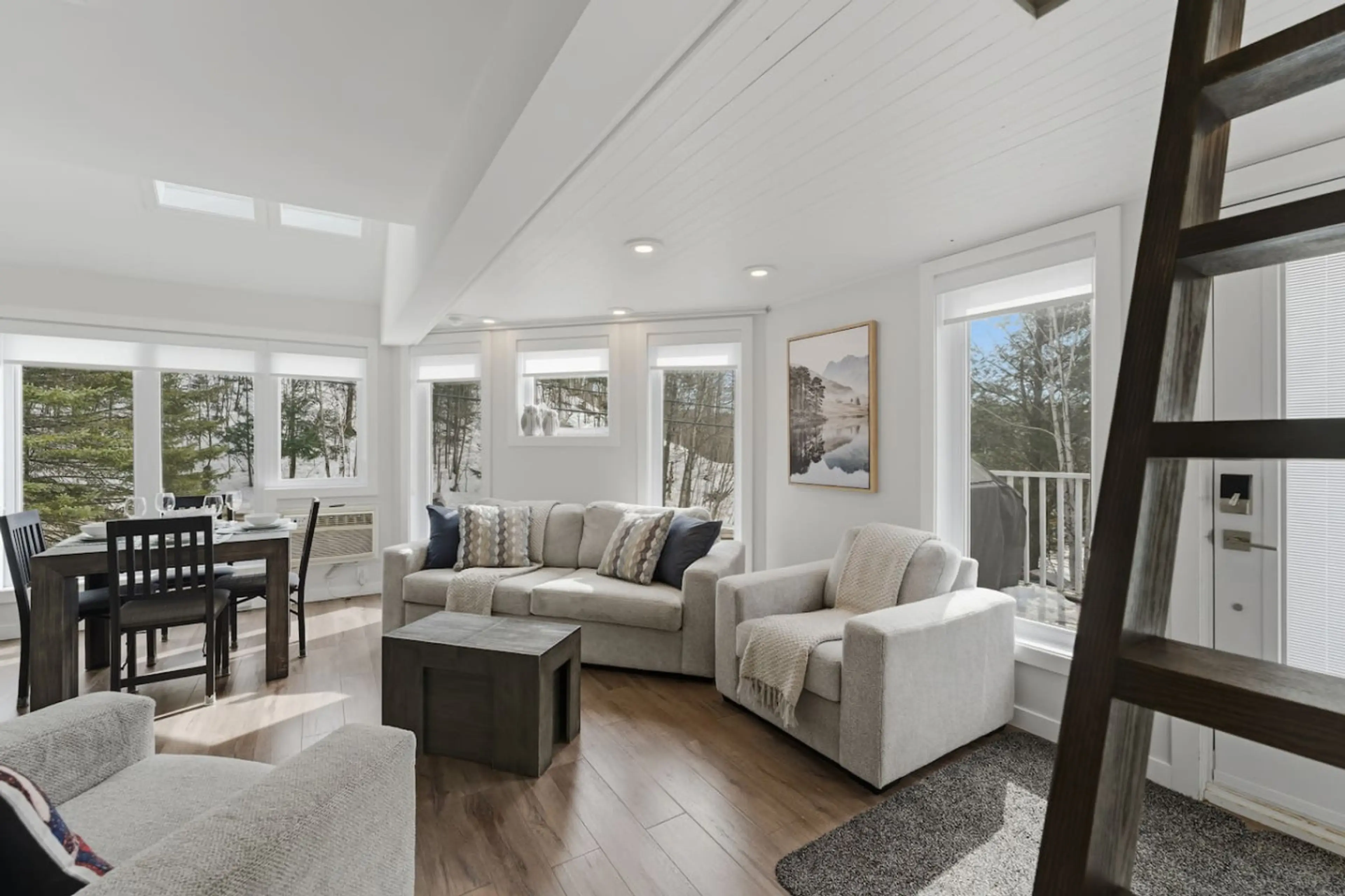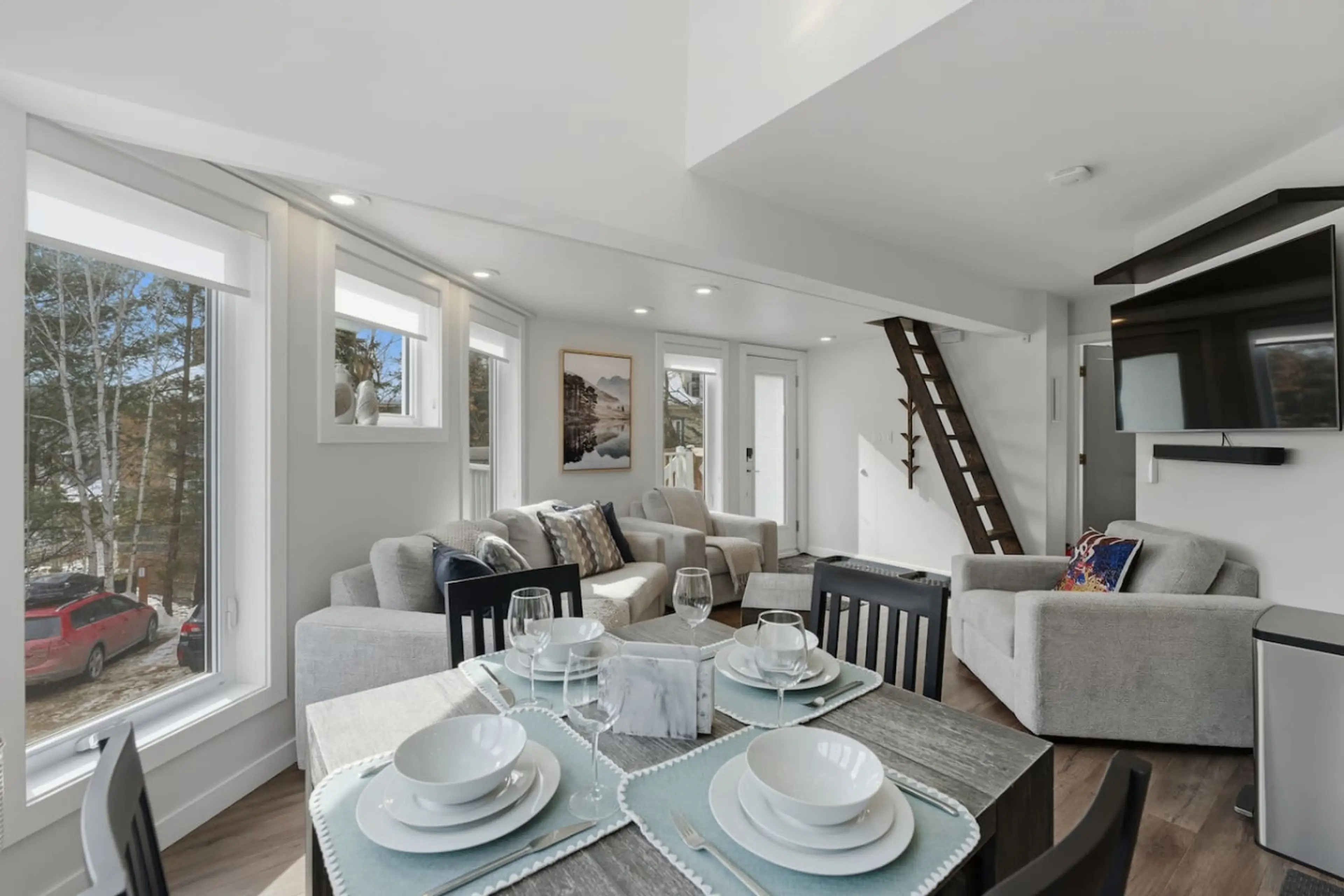 Situated at the foot of the mountain, and directly at Tremblantโ€™s pedestrian village, this condo is conveniently located in the heart of the action! Enjoy the comfort of this renovated 1 bedroom + loft with full kitchen and smart tv. Ski in/out, close to the cabriolet, steps from the Ironman transi...