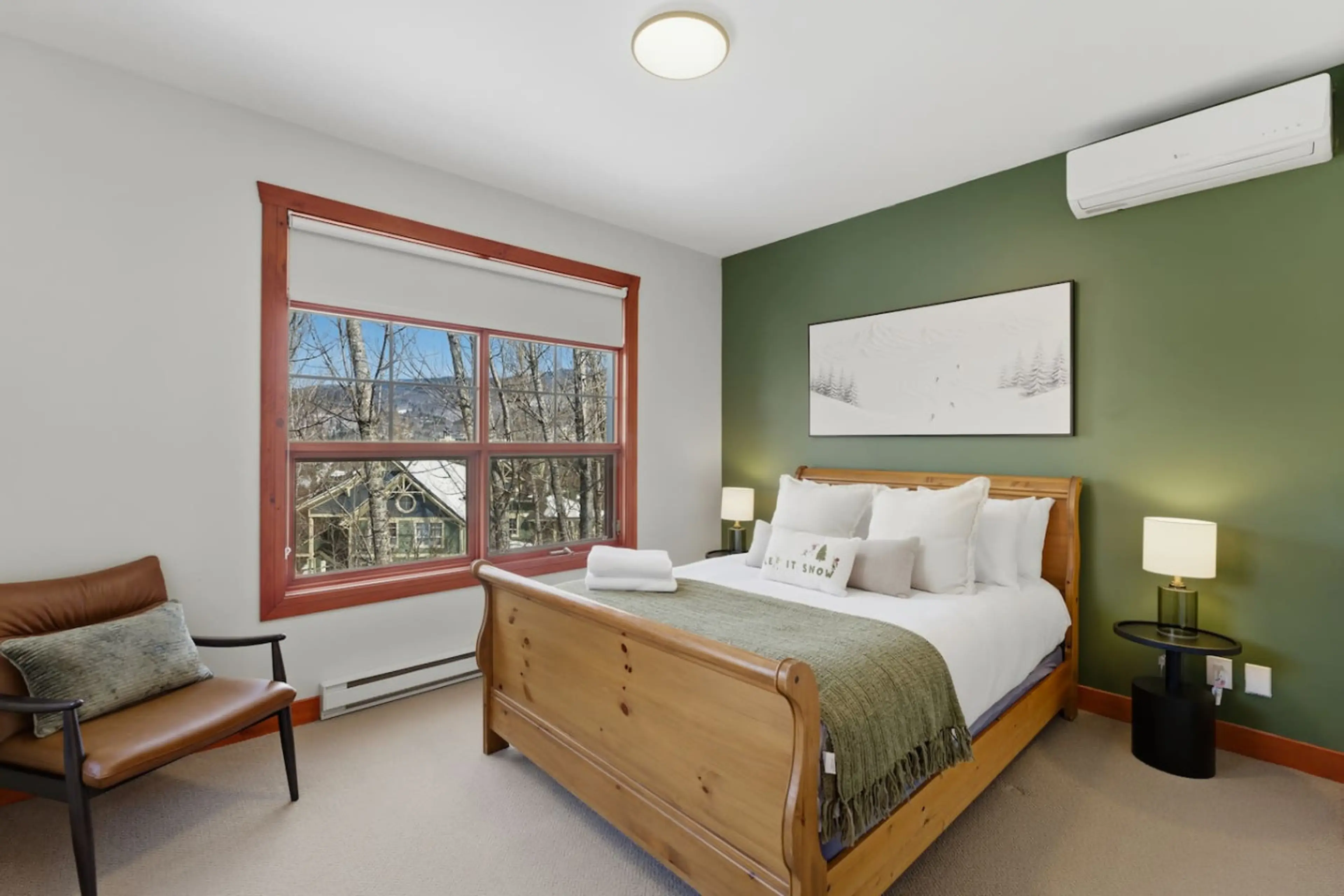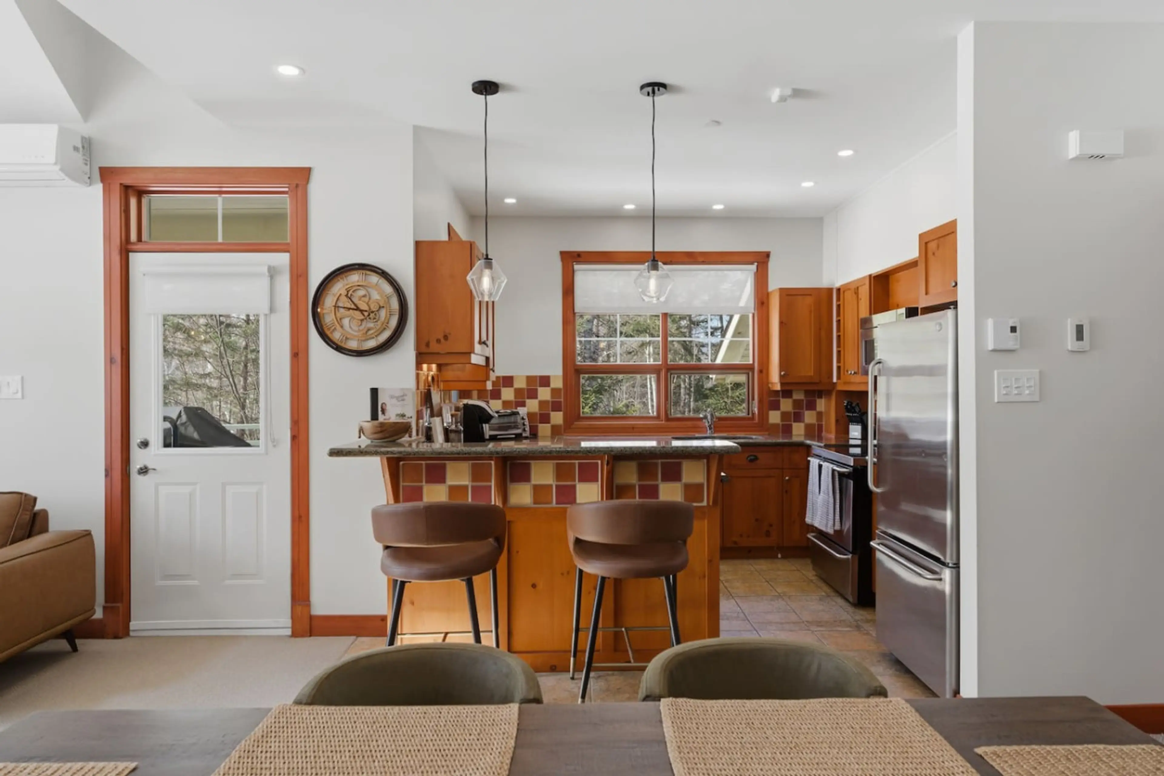 Discover our beautiful, ultra-cozy ski chalet-style apartment, located right on the Le Géant golf course. With 3 bedrooms and 2 bathrooms, it can accommodate up to 8 guests. Enjoy a charming living area with a wood-burning fireplace, open dining space, and fully equipped kitchen, perfect for memorab...